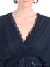 Детали: V-образный вырез спереди и сзади; цельнокроеный рукав 3/4; декорировано кружевной вставкой; сзади на спине завязка на шнурок; в комплекте пояс; низ изделия, окантовка выреза и пояс в рубчик