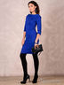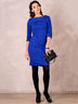 Платье с рукавами 3/4 и округлым вырезом декольте. Приталенный крой подчеркивает достоинства фигуры. Отличный вариант на каждый день.