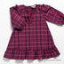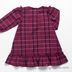 Расклешенное платье застегивается на спинке на пуговицы. Укороченный рукав, в манжеты вставлена резинка. К нижней части изделия пришиты оборка. Полочка декорирована оборками и имитацией застежки на молнию.