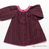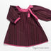 Платье свободного кроя застегивается на пуговицы на спинке по всей длине изделия. Широкие рукава посадены на манжеты на пуговице. В ворот вставлена руглирующая лента, завязывающаяся в бант.