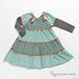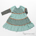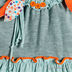 Расклешенное платье с длинным рукавом-фонариком. В вырез горловины вшита резинка. Рукава создают эффект двойки. Платье комбинировано из контрастных тканей. Края обработаны контрастным оверлоком. Полочка декорирована тканевыми цветами, веревочками и пуговками.