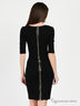 Стильное платье из плотного, приятного на ощупь материала. Округлый вырез горловины. Облегающие рукава. Застежка на спине на молнию. Изделие декорировано оригинальными лентами.