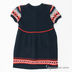 Детали: округлый вырез горловины, короткий рукав, застежка на четыри пуговицы на полочке, отрезной лиф и подол украшены узором