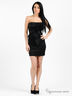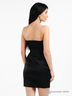 Яркое модное платье-бандо приталенного силуэта из плотной, переливающейся ткани. В верхний край вшиты маленькие прозрачные петли для лямок. Застежка на потайную молнию в боковом шве. Платье декорировано оригинальным цветком из волана и эффектными крупными вертикальными оборками. Спинка собрана на резинку.