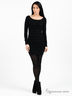 Изящное платье из плотного, приятного на ощупь тонкого трикотажа. Широкий фигурный вырез горловины. Длинные облегающие рукава-реглан. Край ворота, манжеты рукавов и низ изделия выполнены из рибаны. Платье декорировано многоярусными оборками.