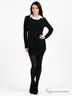 Повседневное стильное платье из плотного, приятного на ощупь трикотажа. Широкий округлый вырез горловины дополнен оригинальной вставкой со стояче-отложным воротником. Длинные прямые рукава с манжетами. Два прорезных кармана на молнии в рамках. Низ платья присборен. Манжеты и подол выполнены из рибаны.