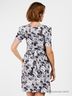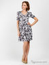 Повседневное платье расклешенного силуэта. Округлый вырез горловины. Короткие рукава. Талия на втачном поясе с завязками. Оригинальный узор.