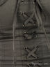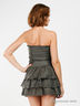 Оригинальное платье расклешенного силуэта. Без бретелей. По бокам вставки из мелких резиночек. Спереди декоративная шнуровка. Низ украшен многослойными воланами.