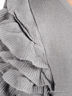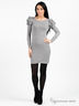 Элегантное платье из мягкого, плотного трикотажа. Приталенный силуэт. Широкий вырез горловины "лодочка". Длинные прямые рукава с многорядными эффектными оборками около плеча. Манжеты рукавов выполнены из кашкорсе.