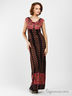 Стильное длинное платье расклешенного силуэта. Вырез горловины "качели". Без рукавов. Талия посажена на резинку. Оригинальный сочный узор.