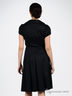 Простое платье из хлопчатобумажной ткани. Отрезной лиф с запахом. Глубина декольте фиксирована. Отложной воротник с лацканами. Короткий рукав с декоративным складками. Юбка-клеш с простроченным складками. Застежка - потайная молния, проходит по правому боковому шву.