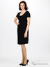 Детали: округлый вырез горловины, короткий рукав, отрезной пояс, складки, по боковым швам пришиты ленты завязывающиеся на спинке
