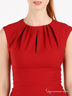 Детали: застежка на молнию на спине, округлый вырез горловины, полочка дополнена складками и прорезью, втачной пояс