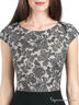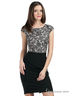 Детали: округлый вырез горловины, короткий рукав, скрытая застежка на молнию на спинке, контрастный лиф, вытачки