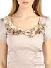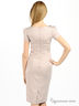 Детали: V-образный вырез горловины, короткий рукав, скрытая застежка на молнию на спинке, вытачки, отрезной лиф, вырез декорирован атласными элементами