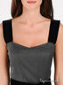 Детали: широкие бархатные лямки, отрезной лиф, скрытая застежка на молнию в левом боковом шве, фигурные вытачки, юбка в складку, в комплекте бархатный пояс