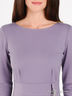 Детали: застежка на скрытую молнию на спине, укороченный прямой рукав, округлый вырез горловины, втачной пояс с оригинальным декоративным элементом, небольшая шлица на задней части изделия