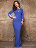 Восхитительное платье в пол. Роскошный цвет бордо. Силуэт - русалка. От линии колена платье слегка расклешается. Длинный рукав оформлен разрезами от линии локтя, край - резинка эффектно держится на кисти. Вырез - лодочка. По линии груди вырез - щель, декорированный тканью - сеточкой черного цвета.