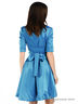 Детали: отложной ворот-стойка, застежка на шесть пуговиц на полочке, вытачки, два передних кармана; по боковым швам пришиты широкие ленты, завязывающиеся на спинке