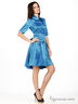 Детали: отложной ворот-стойка, застежка на шесть пуговиц на полочке, вытачки, два передних кармана; по боковым швам пришиты широкие ленты, завязывающиеся на спинке