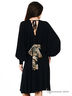 Детали: глубокие вырезы, завязка на шее, широкий короткий цельнокроеный рукав посажен на манжету, по боковым швам пришиты шифоновые ленты