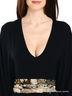 Детали: глубокие вырезы, завязка на шее, широкий короткий цельнокроеный рукав посажен на манжету, по боковым швам пришиты шифоновые ленты