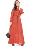 Детали: длинные рукава, круглый вырез, застежка на пуговицу на спине, длина макси