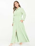Детали: отложной воротник, длинные рукава, спереди застежка на пуговицы, длина макси