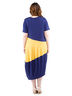 Детали: короткие рукава, круглый вырез, длина миди, прорезные карманы