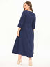 Детали: круглый вырез, рукав 3/4, по бокам карманы, длина миди