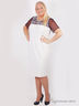 Потрясающее платье из высококачественного материала. Модель полуприталенного силуэта. Округлый вырез горловины. Короткие прямые рукава из черной полупрозрачной ткани. Полочка дополнена вставкой из ажурной ткани с цветочным узором.