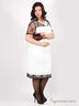 Стильное платье приталенного силуэта. Округлый вырез горловины. Короткие прямые рукава. На полочке крупный бант. На полочке, рукавах и подоле вставки из тонкой кружевной ткани с цветочным узором.