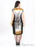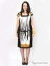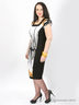 Великолепное платье-футляр из полувискозного материала. Вырез горловины - каре Короткие рукава. Вырез дополнен декоративными элементами. Полочка, спинка и рукава декорированы вставками контрастного цвета.