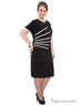 Великолепное платье приталенного силуэта. Округлый вырез горловины. Короткие прямые рукава. На полочке контрастные вставки. На спинке расположена шлица.