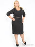 Изящное платье из качественной эластичной ткани. Облегающие рукава 3/4. Округлый вырез горловины. На спинке расположена застежка на молнию. Сзади на юбке расположена шлица.