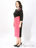Стильное платье-футляр. Округлый вырез горловины. Прямые рукава 3/4. полочка декорирована контрастной вставкой и крупными бусинами.