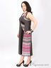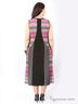 Великолепное платье приталенного силуэта. Широкий округлый вырез горловины. Широкие лямки. Платье декорировано контрастными геометрическими вставками.