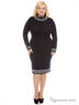 Великолепное платье облегающего покроя из полувискозного материала. Широкий ворот-стойка. Длинные облегающие рукава. Ворот, рукава и подол декорированы контрастными плетенными узорами.