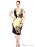 Элегантное платье приталенного силуэта. V-образный вырез горловины. Короткие рукава. Оригинальный узор.