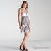 Платье из трикотажа светло-серое с бирюзовыми крылышками на сиреневых лямках.