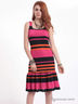 Замечательное платье приталенного покроя на широких бретелях. Модель с округлым вырезом горловины выполнена из принтованной ткани. Низ изделия декорирован рюшей. Отличный вариант для создания модного летнего образа.