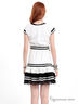 Детали: платье-футляр, выше колена, короткий рукав, присутствуют накладные карманы, юбка выполнена с элементами декора в виде мелких воланов по линии горловины и по низу юбки, шлевки под пояс и пояс в комплекте.