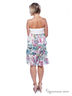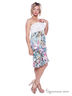Летнее игривое платье расклешенного кроя. Выполнено из приятного на ощупь материала. Отрезной топ без бретелей, украшен кружевом, низ выполнен из многослойных воланов. Оригинальный цветочный принт.