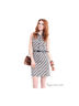 Платье-футляр, спереди присутствуют пуговицы до линии талии, рукав короткий, окружность талии подчеркнута тонким ремнем