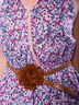 Летнее игривое платье слегка приталенного кроя. Выполнено из приятного на ощупь материала. V-образный вырез, без рукавов, сзади нежная кружевная вставка, талия подчеркнута кожаным ремешком с декоративным цветком. Яркий принт.