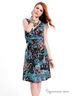 Детали: платье декольтированное, чуть выше колена, без рукавов, талия фиксируется широким вшитым поясом с небольшой драпировкой, выполнено в яркой летней расцветке.