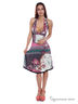 Очаровательное летнее платье слегка расклешенного кроя. Выполнено из приятного на ощупь материала. Откровенный отрезной лиф с широкой бретелью через шею. Яркий оригинальный принт.