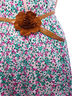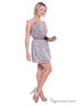 Летнее игривое платье слегка приталенного кроя. Выполнено из приятного на ощупь материала. V-образный вырез, без рукавов, сзади нежная кружевная вставка, талия подчеркнута кожаным ремешком с декоративным цветком. Яркий принт.