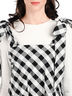 Детали: широкие бретели завязываются на плечах в банты, низ изделия дополнен оборкой, два кармана