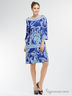 Замечательное платье приталенного силуэта. Изделие с рукавами длиной 3/4 и округлым вырезом горловины. Модель выполнена из приятного к телу материала с ярким рисунком. Прекрасный вариант на каждый день.